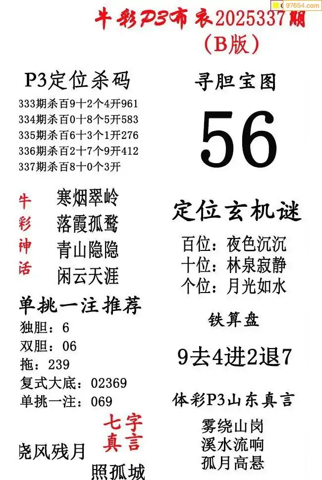 2025年337期北盟天机图+p3仙机图谜 _排三图谜专区