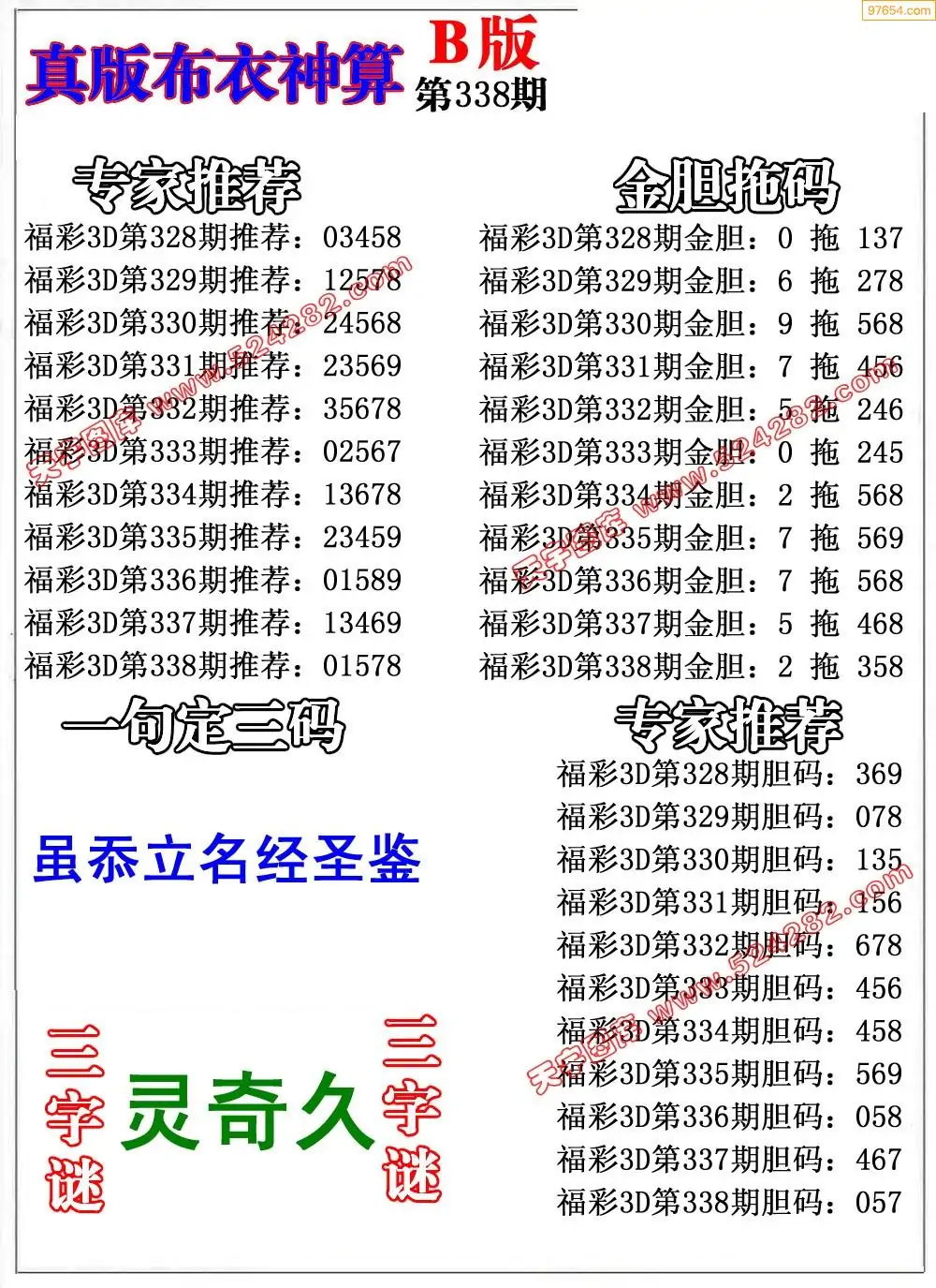 福彩338期3d真精华布衣+布衣早报(转载)