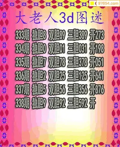 2025338期彩彩网3d原创图迷搜集(天中整理)