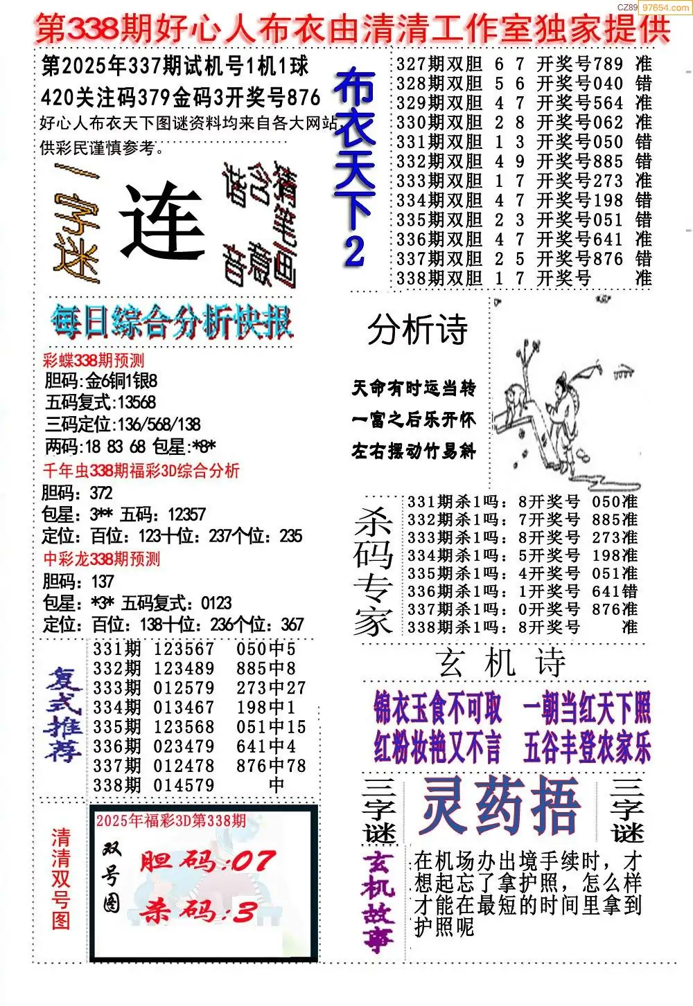 福彩338期3d真精华布衣+布衣早报(转载)