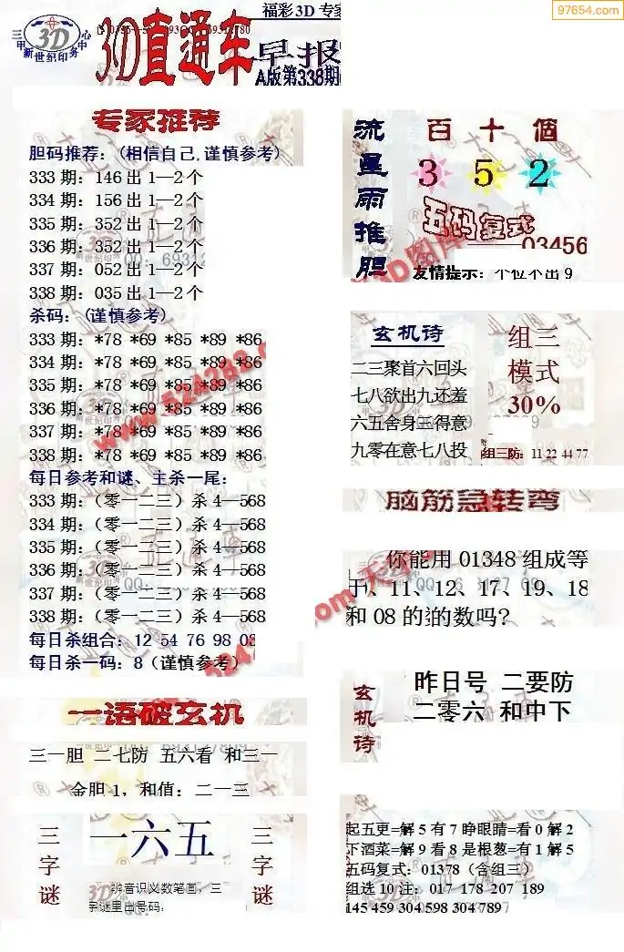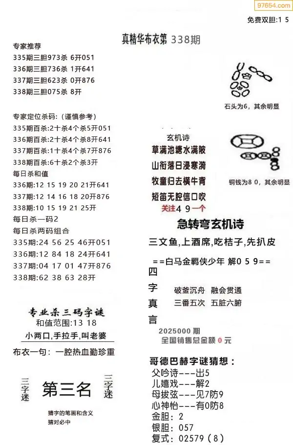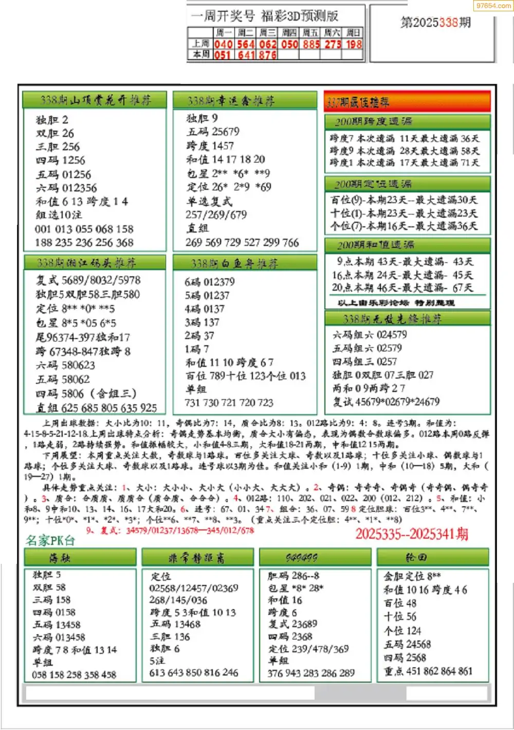 (2)25年338期本期3d图迷汇总_福彩3D图谜总汇图