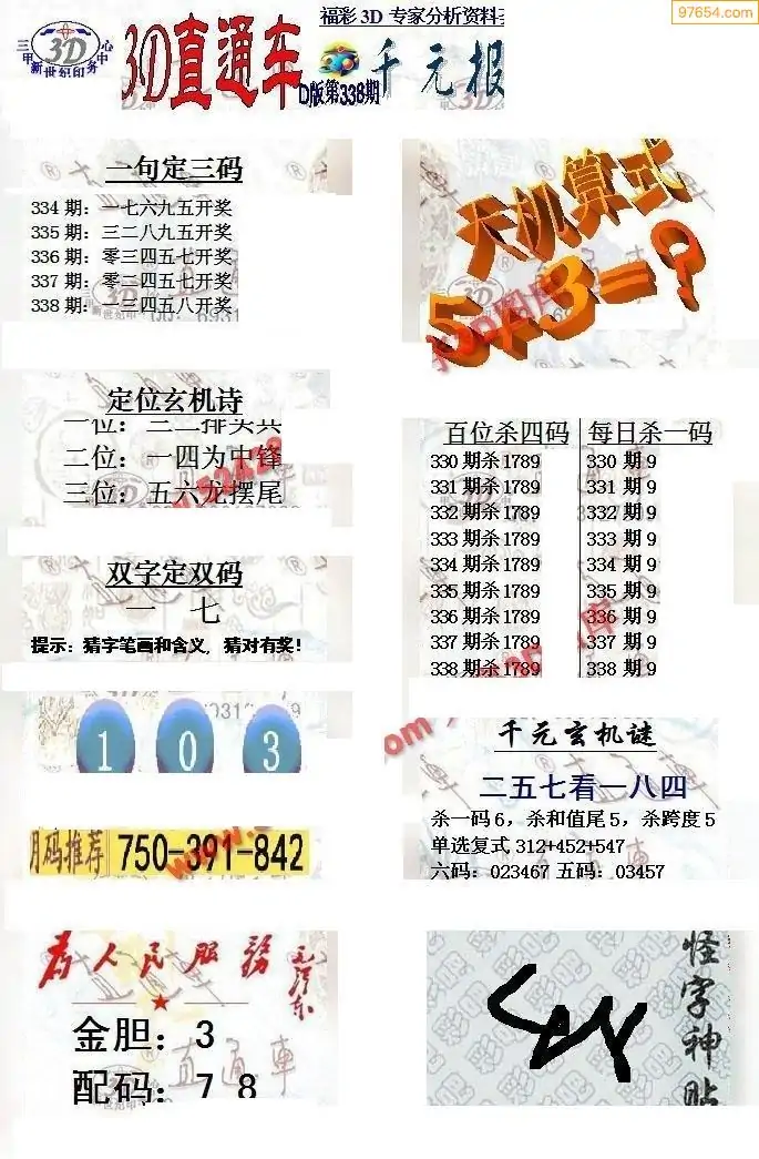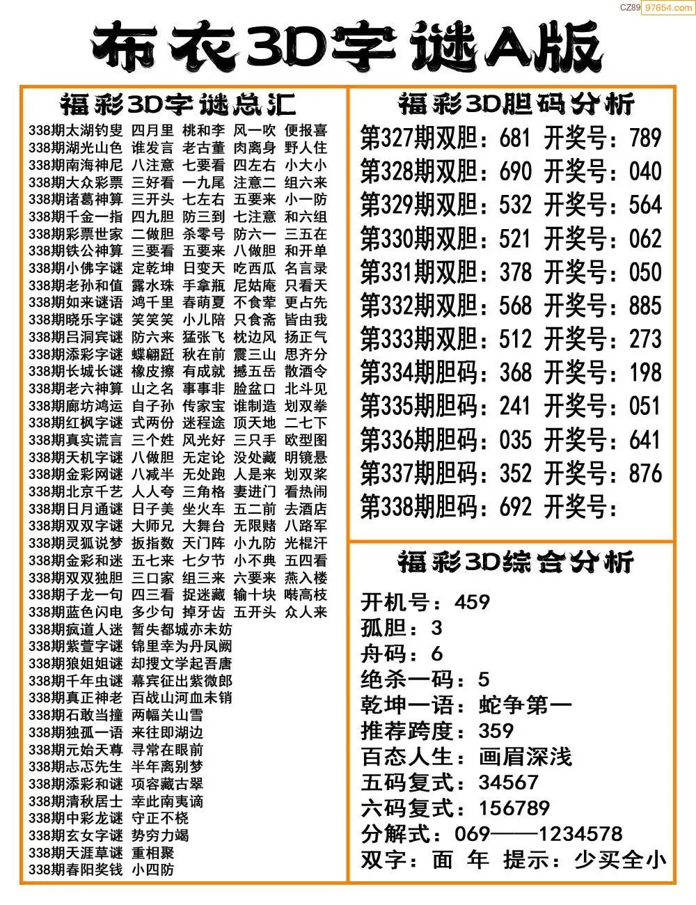 (3)2025338期3D预测总汇全图_福彩3d图谜字谜总汇
