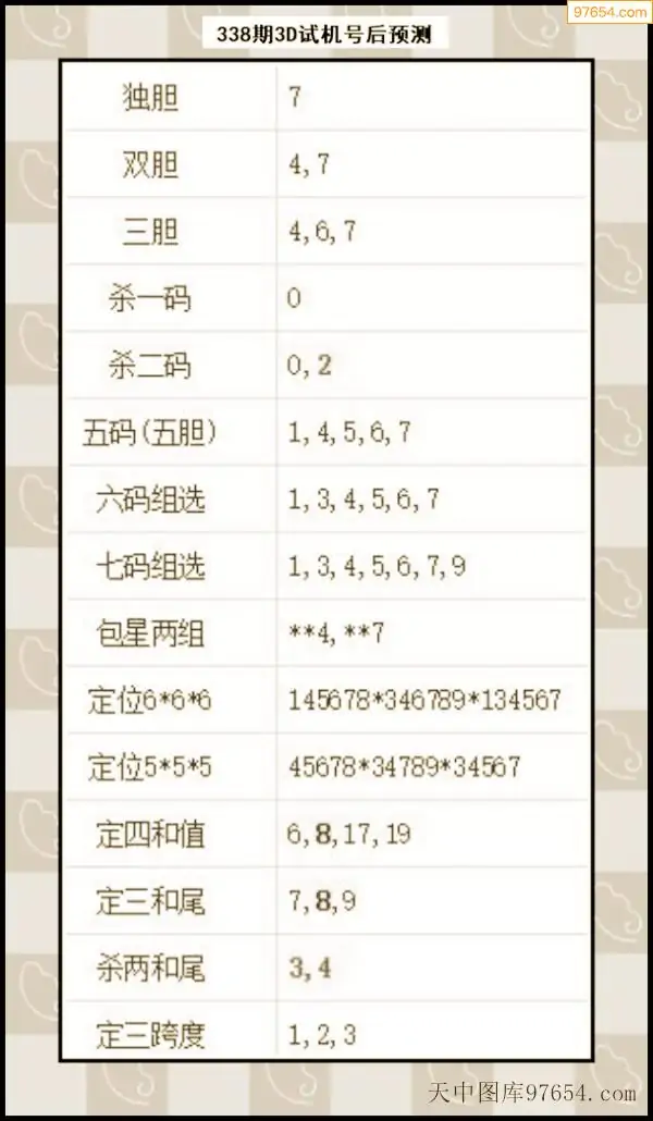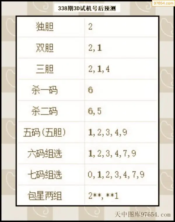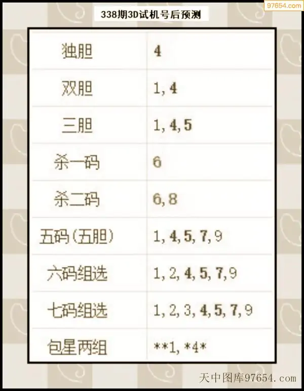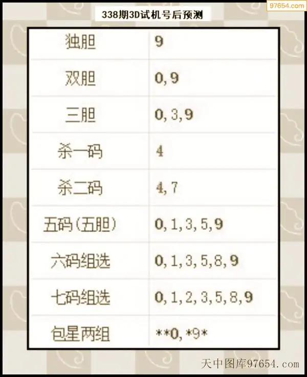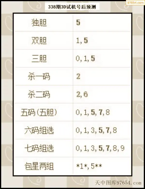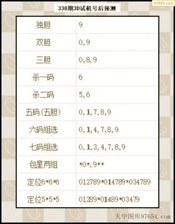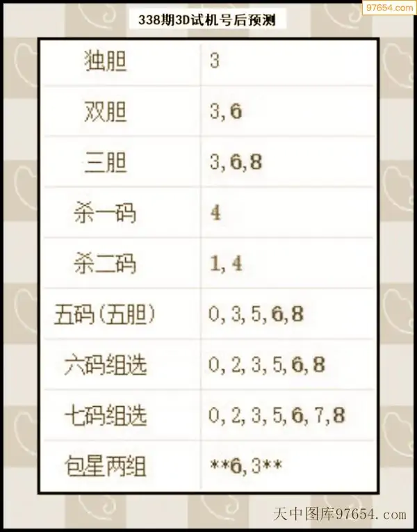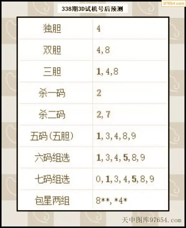 338期西南胆王预测本期3D开奖结果