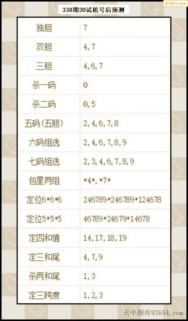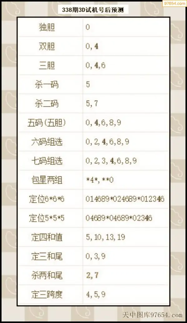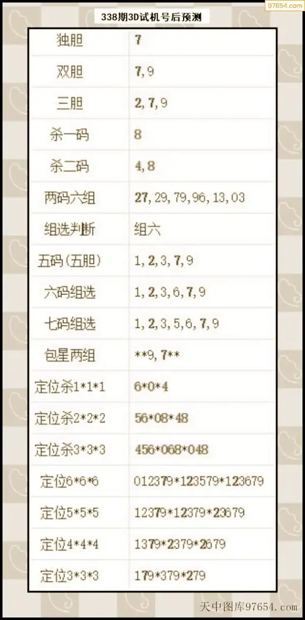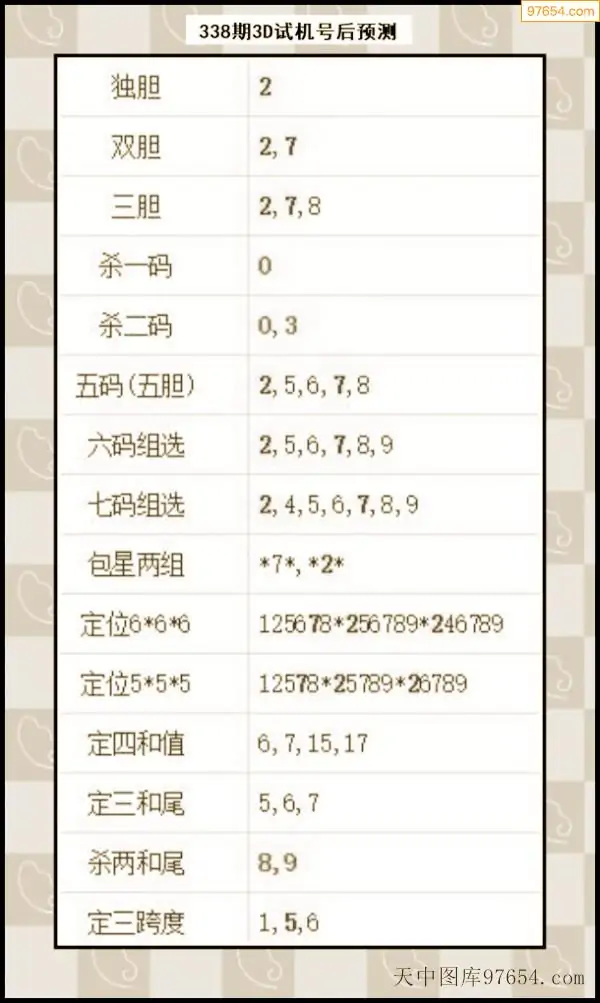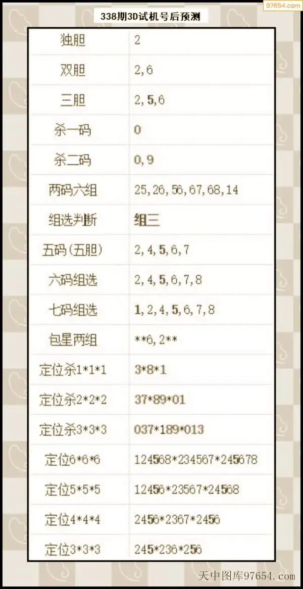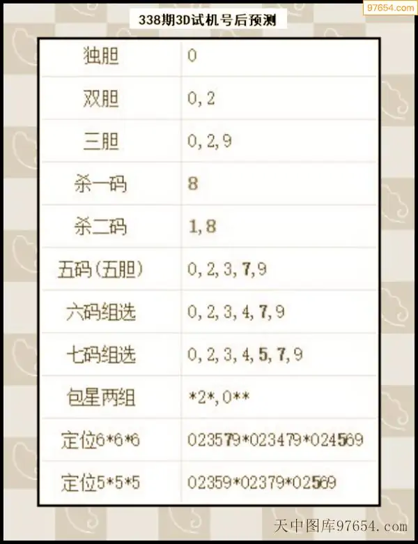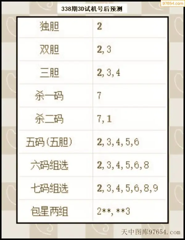 338期西南胆王预测本期3D开奖结果