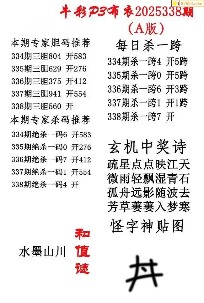 2025338期彩友图迷汇总_体彩排列3字谜图谜汇总专辑