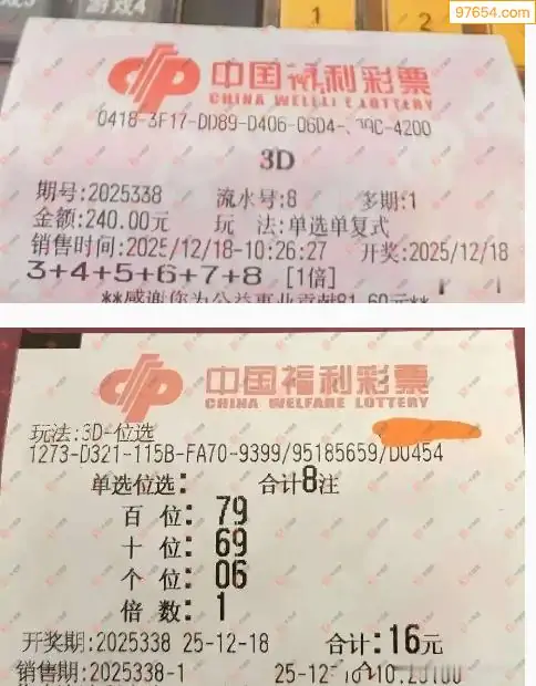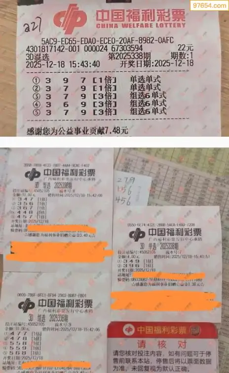 25338期福彩3d今天彩民晒票