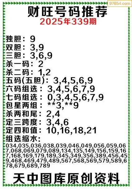 3D原创339期旺财出号推荐
