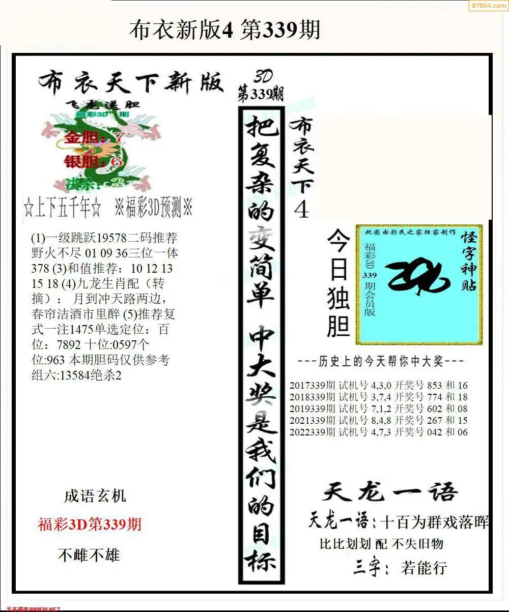 福彩339期3d真精华布衣+布衣早报(转载)