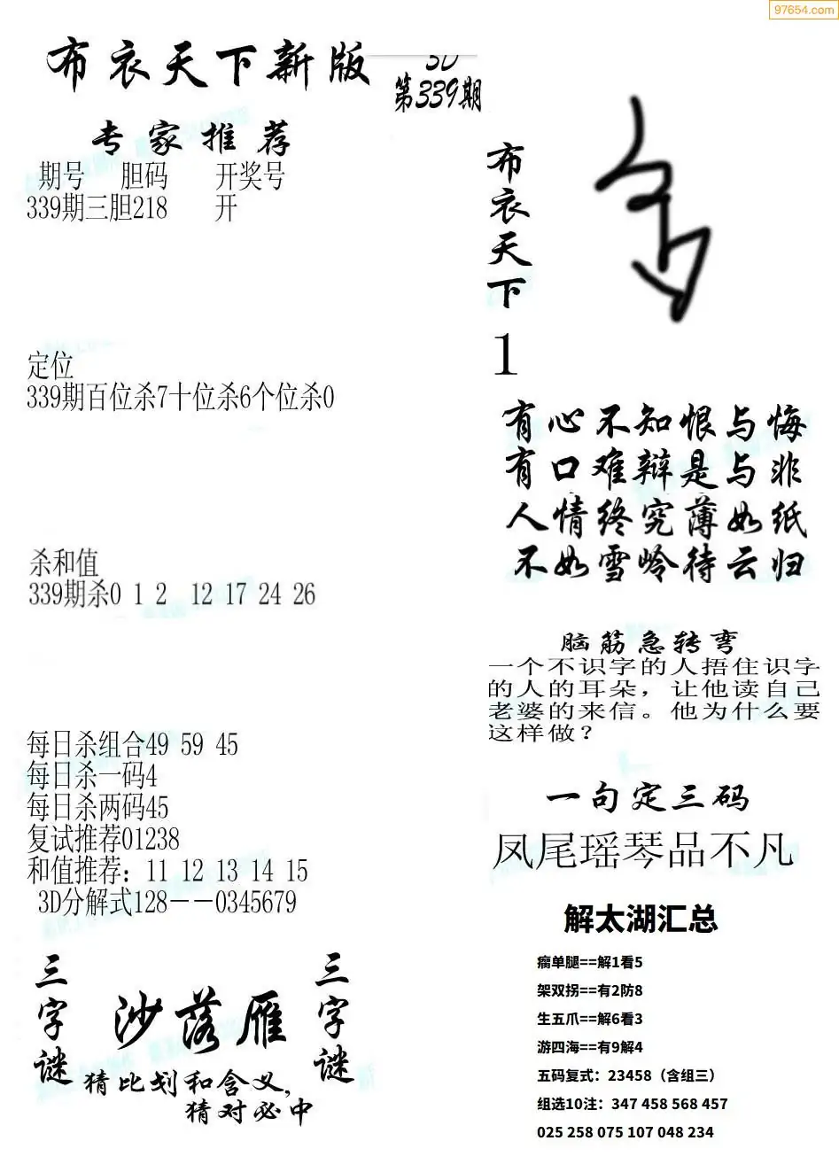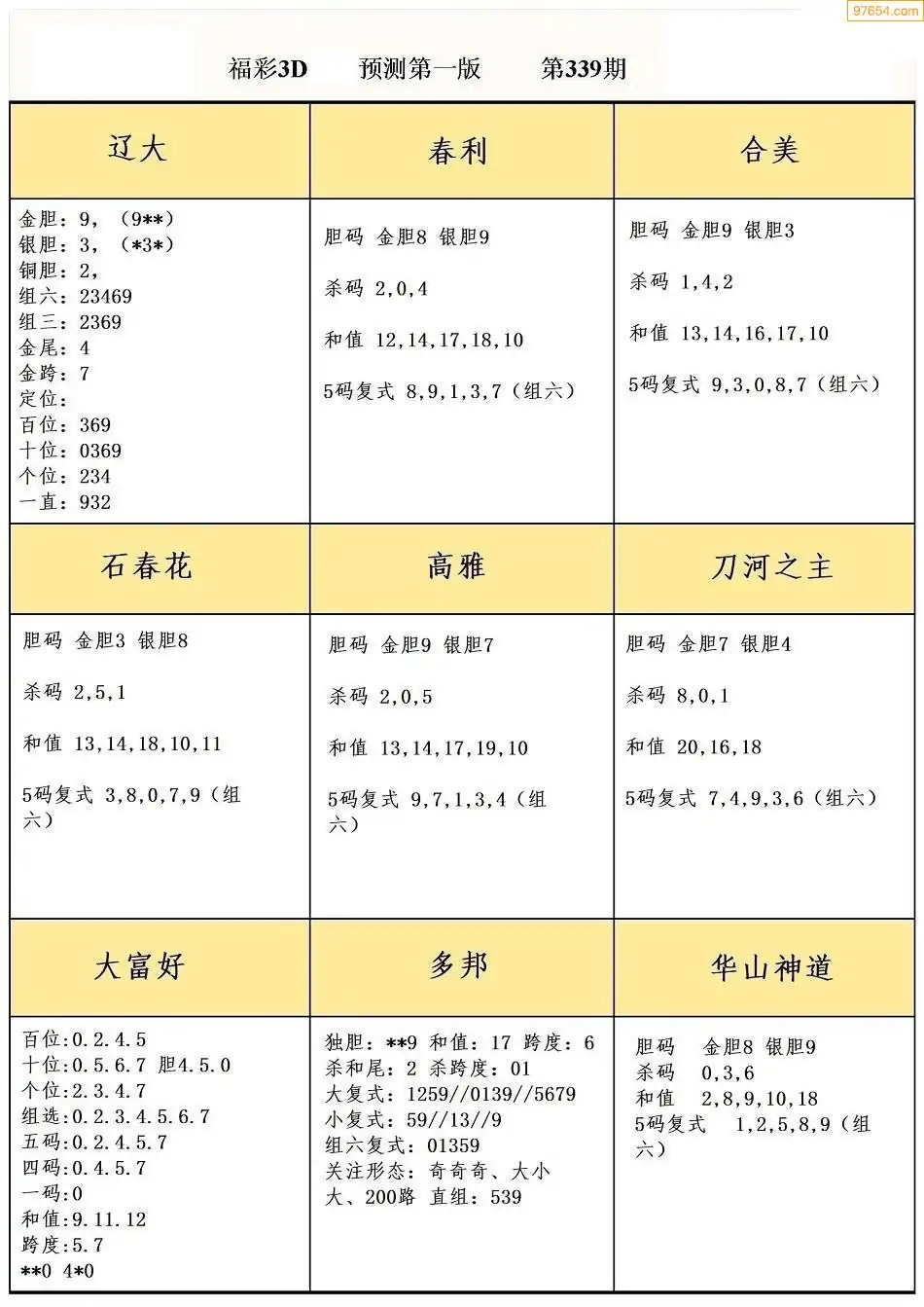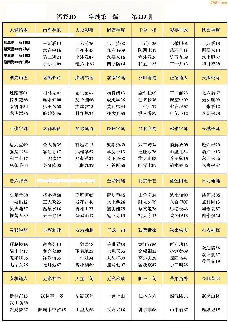(3)2025339期3D预测总汇全图_福彩3d图谜字谜总汇