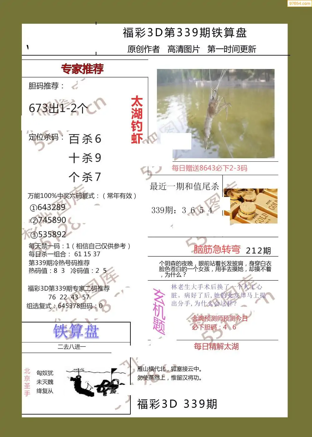 (3)2025339期3D预测总汇全图_福彩3d图谜字谜总汇
