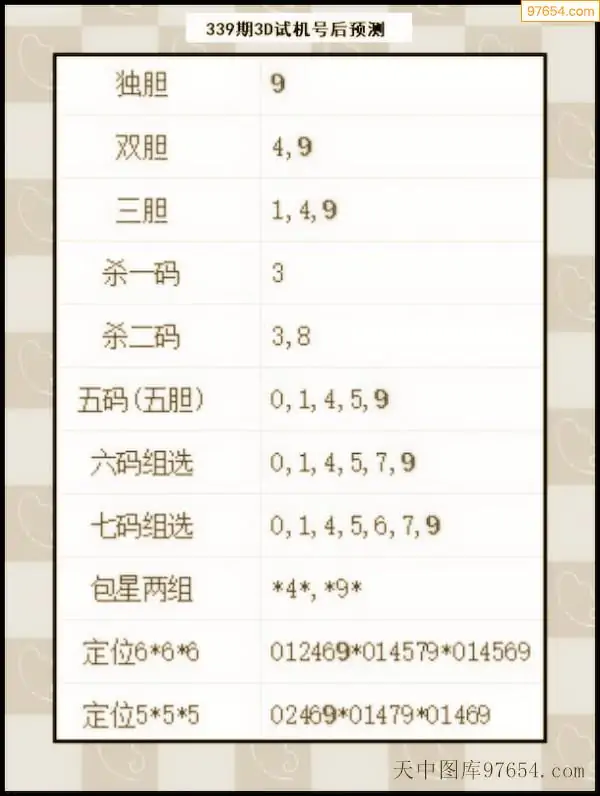 25年338期3d试机号后一语定胆分析汇总