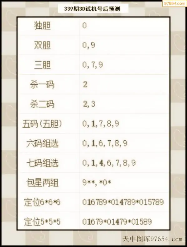 25年338期天中图库专家3D试机号后分析汇总