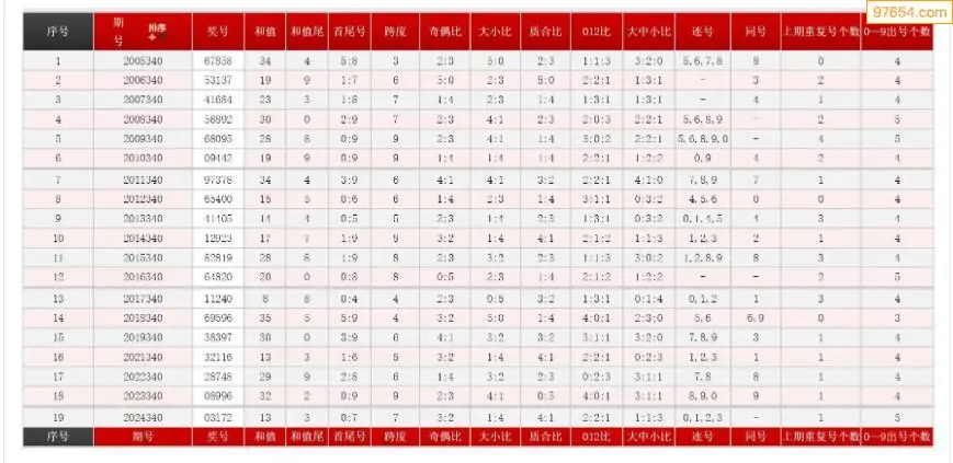 340期体彩P5历史同期对比图表+近期走势图分析