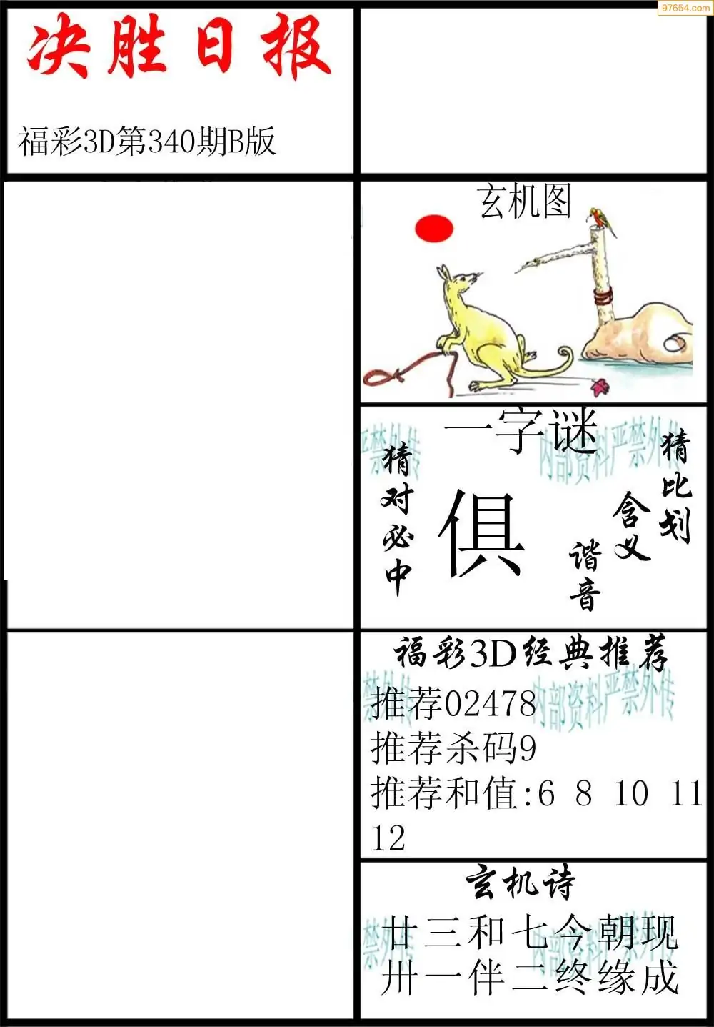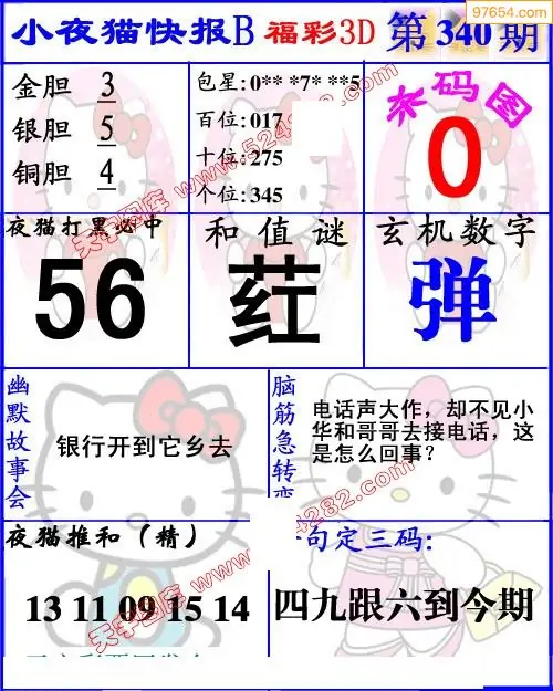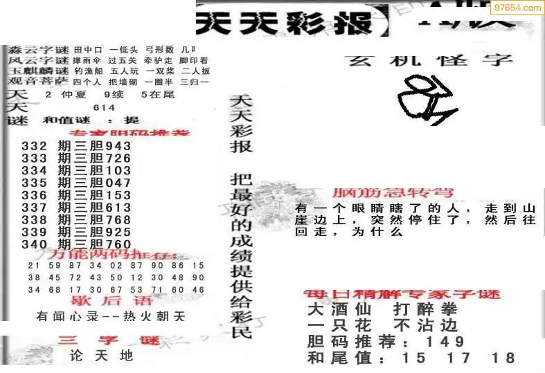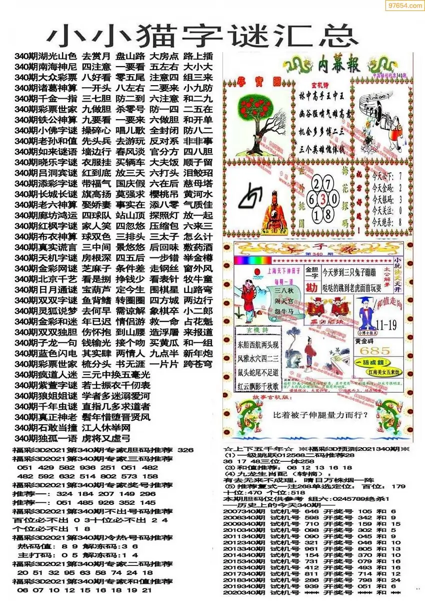 340期3D牛彩预测报+彩吧字谜报
