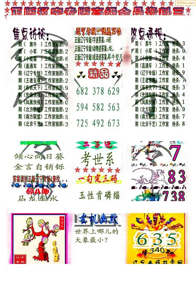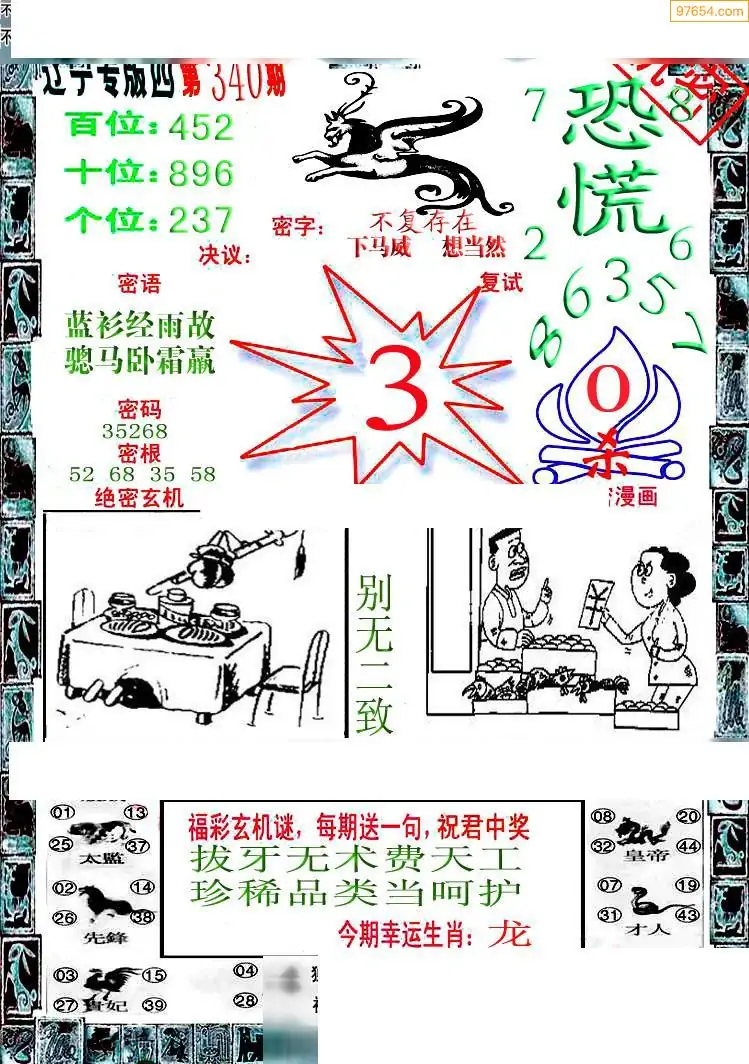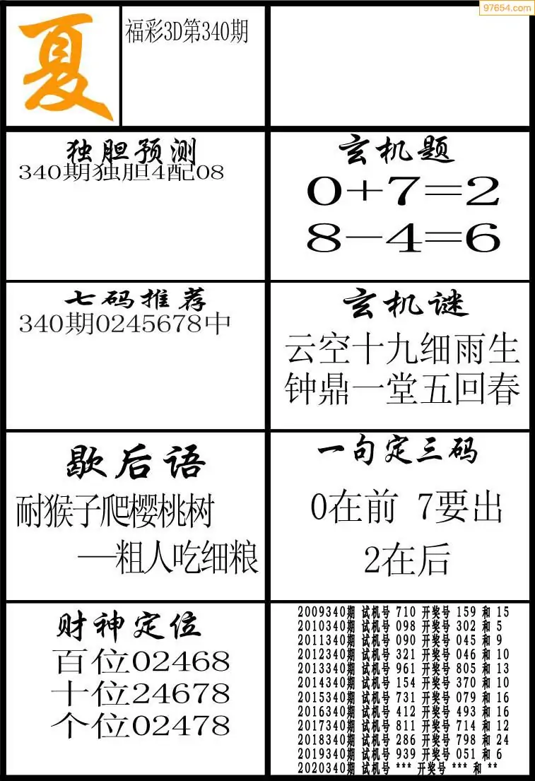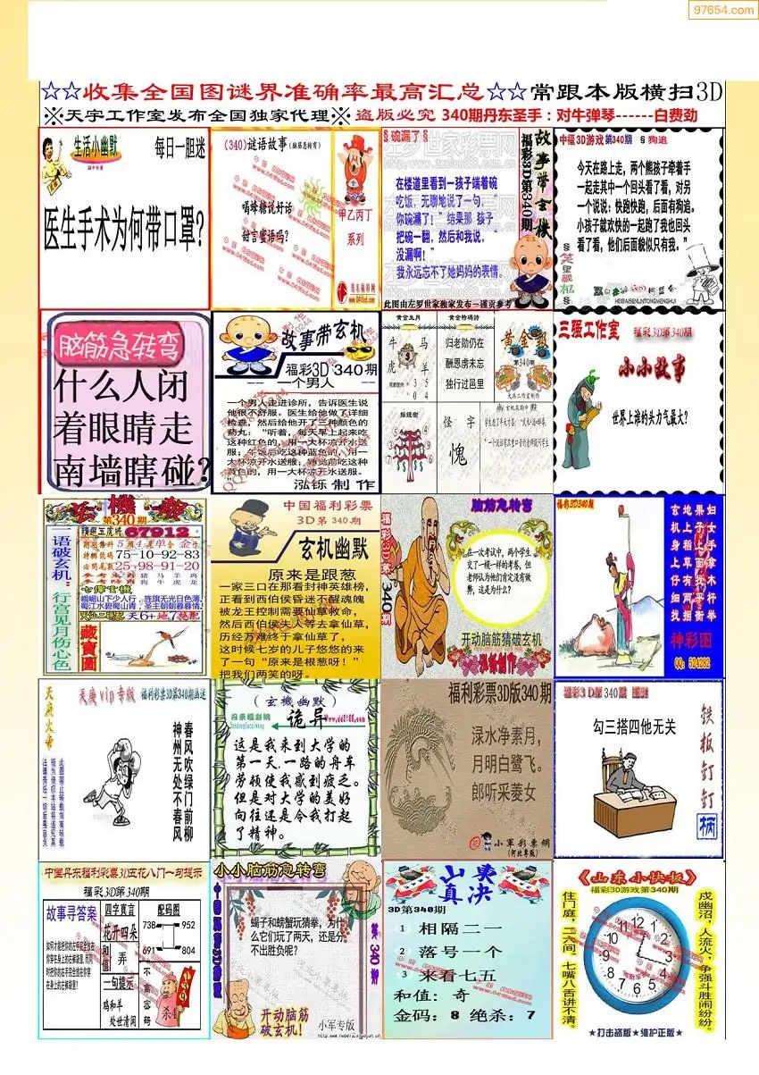 340期3D牛彩预测报+彩吧字谜报