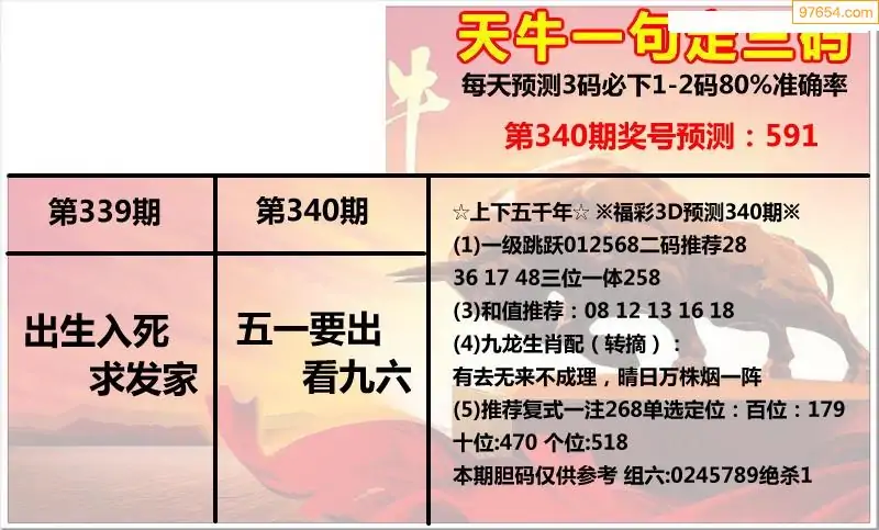福彩3D340期天牛彩吧套图整合总汇