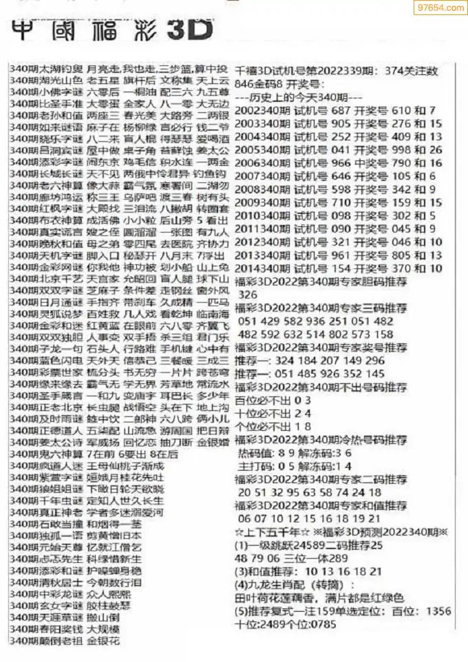 (3)2025340期3D预测总汇全图_福彩3d图谜字谜总汇