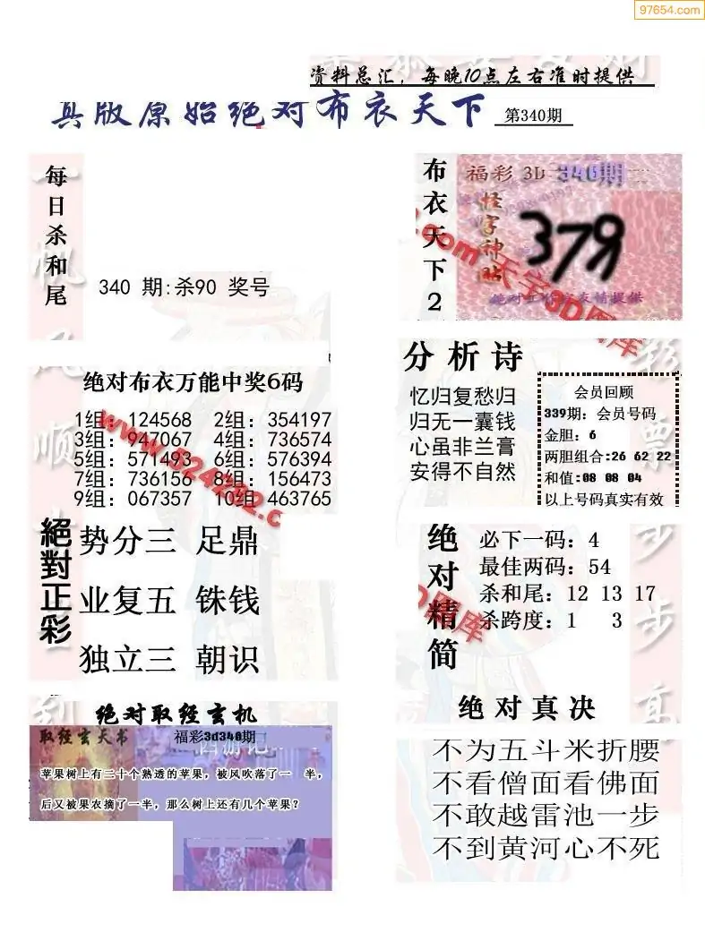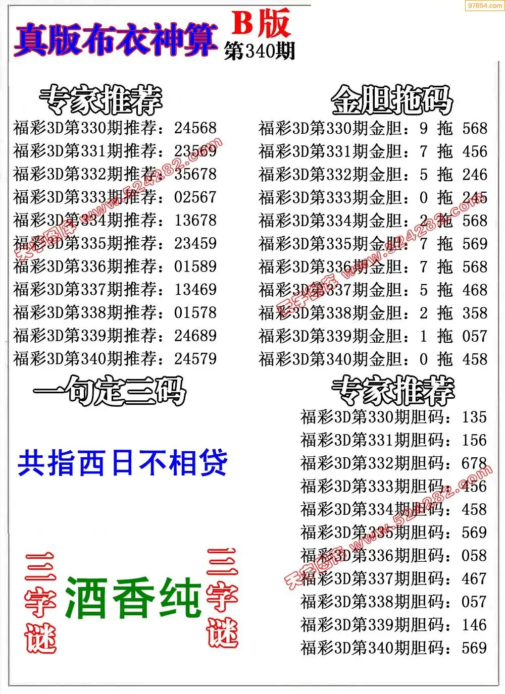 (2)25年340期本期3d图迷汇总_福彩3D图谜总汇图
