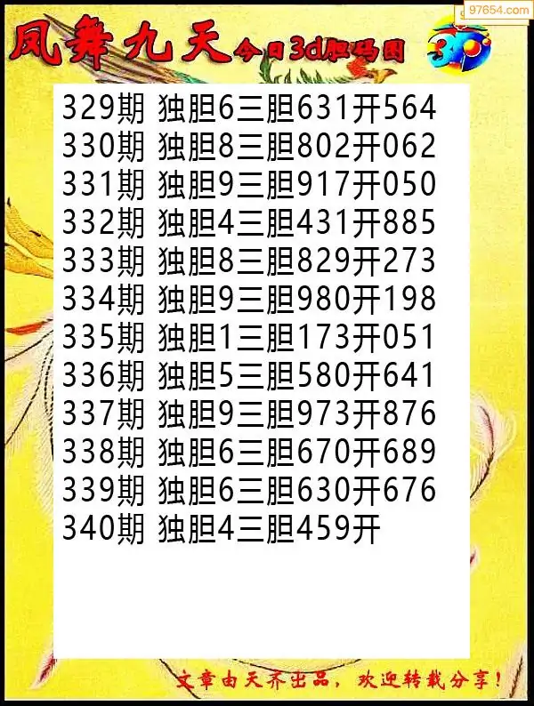 340期97654本站收集胆码出号预测