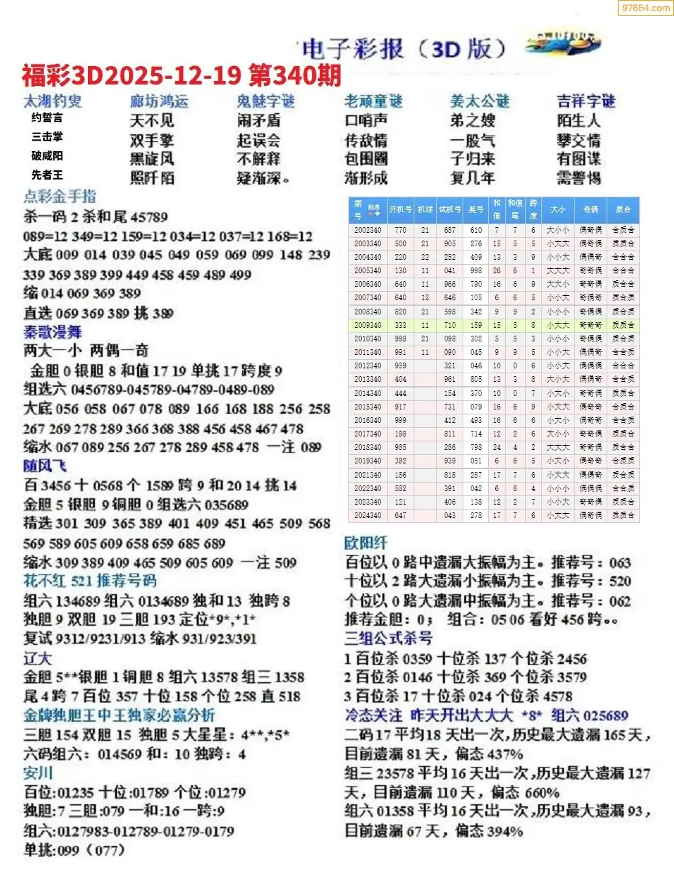 (2)25年340期本期3d图迷汇总_福彩3D图谜总汇图