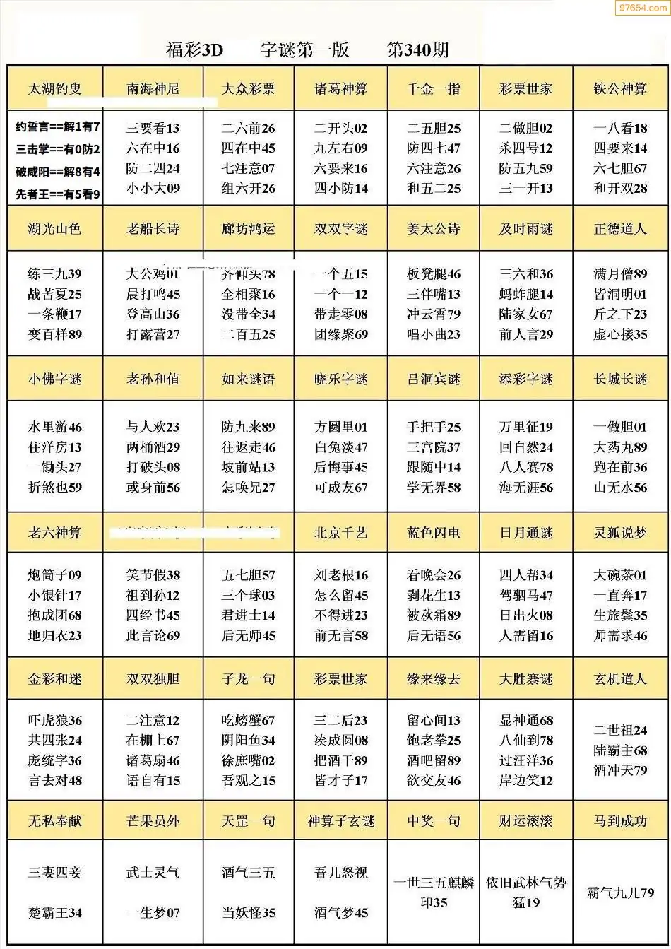 (3)2025340期3D预测总汇全图_福彩3d图谜字谜总汇