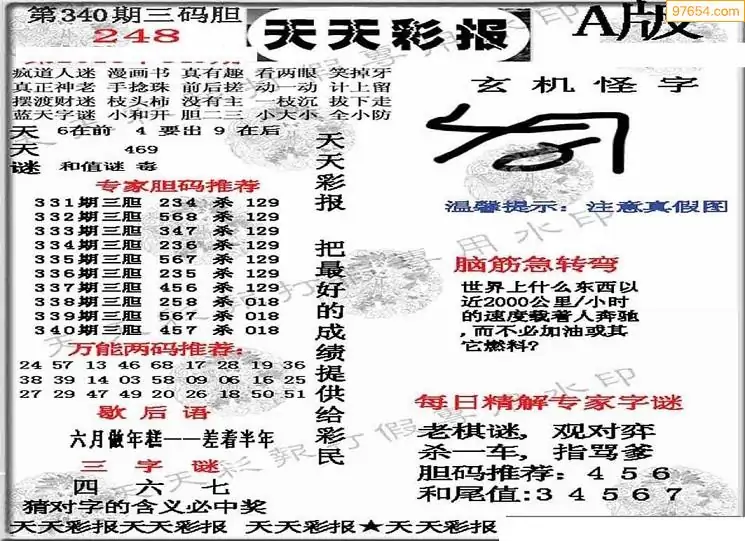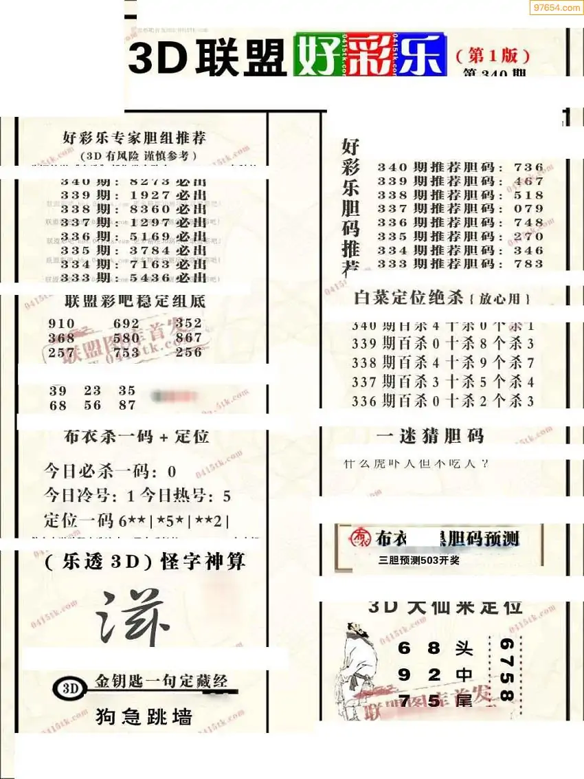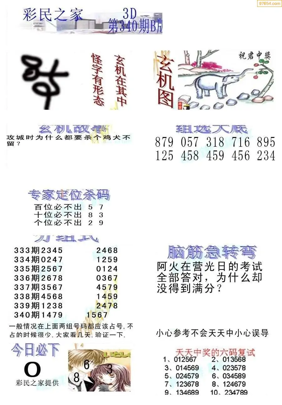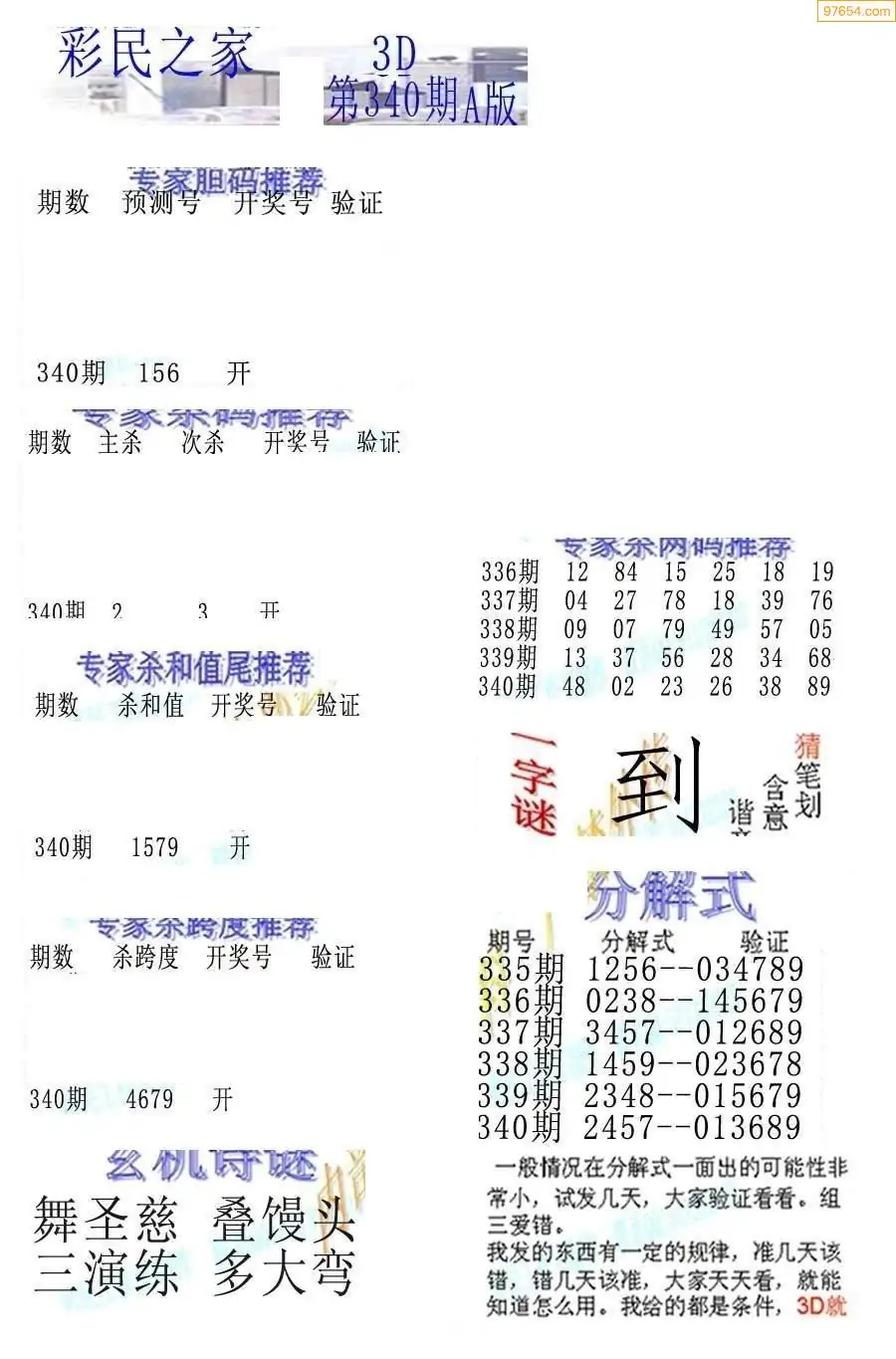 (3)2025340期3D预测总汇全图_福彩3d图谜字谜总汇