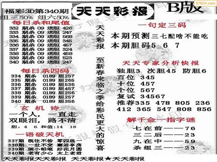 (8)25年340期今日3d各类彩报汇总