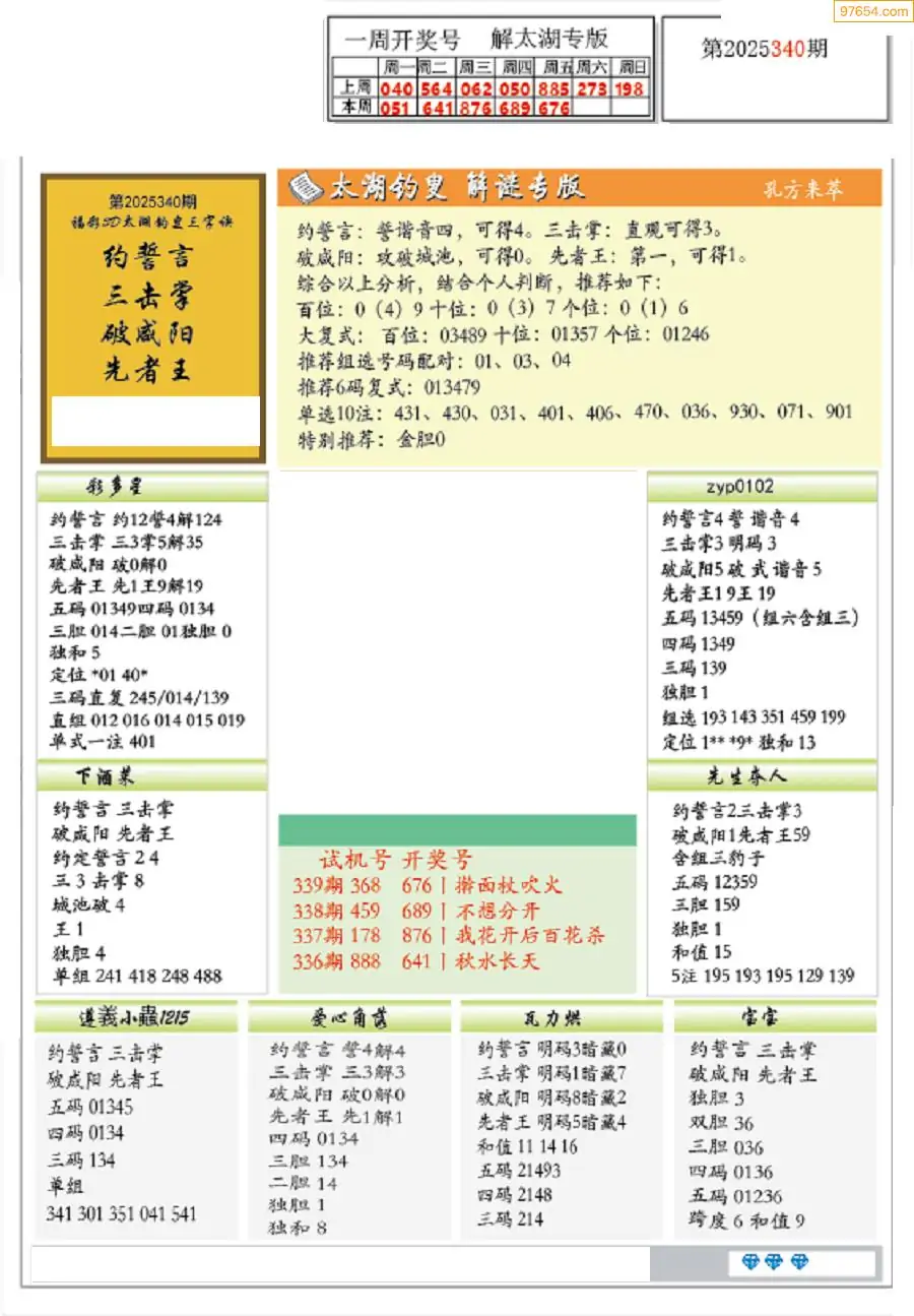 25年340期3d选号彩报图谜画谜