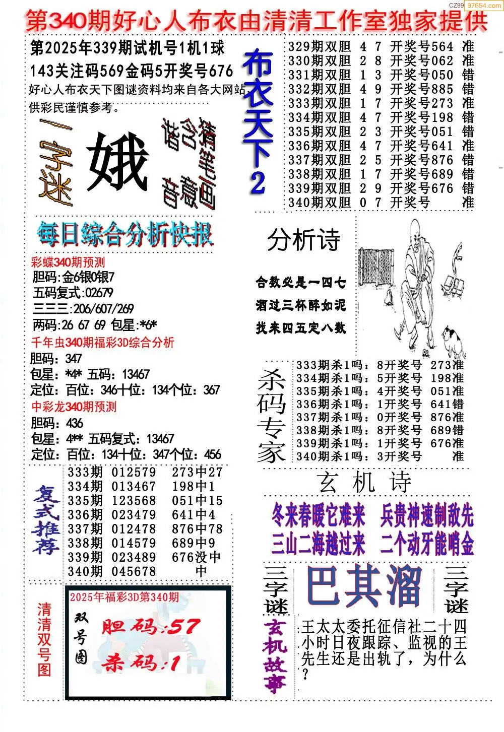 福彩340期3d真精华布衣+布衣早报(转载)