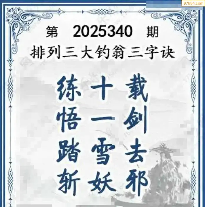 25年体彩p3第340期大钓翁三字诀