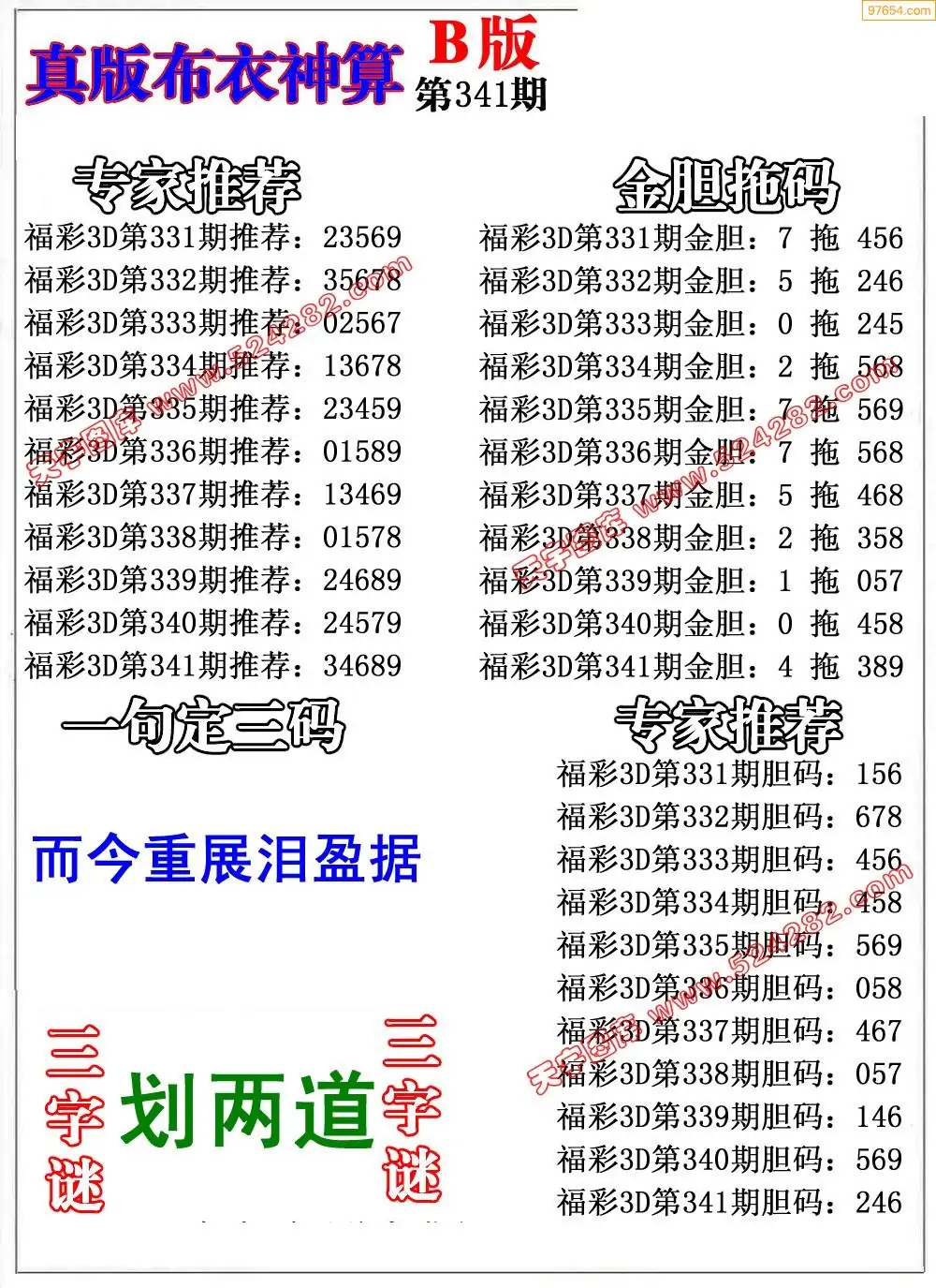 福彩341期3d真精华布衣+布衣早报(转载)