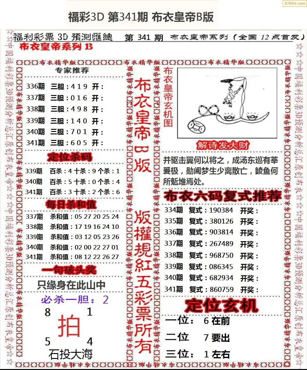 (2)25年341期本期3d图迷汇总_福彩3D图谜总汇图