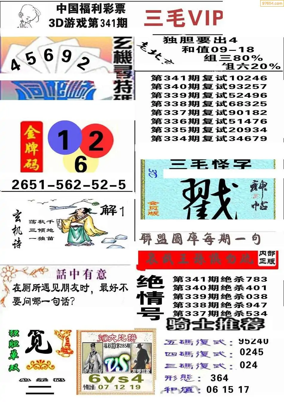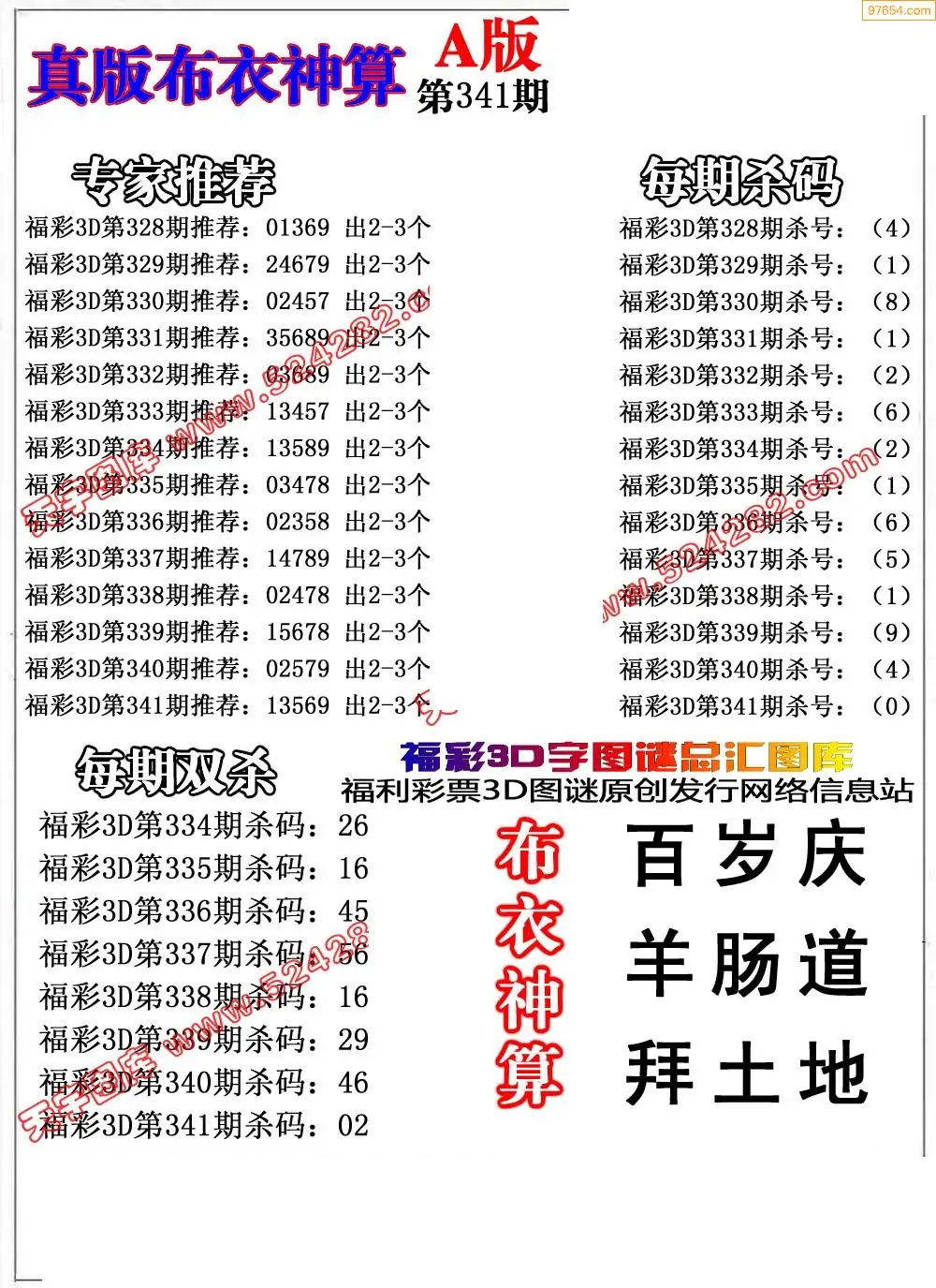 (3)2025341期3D预测总汇全图_福彩3d图谜字谜总汇