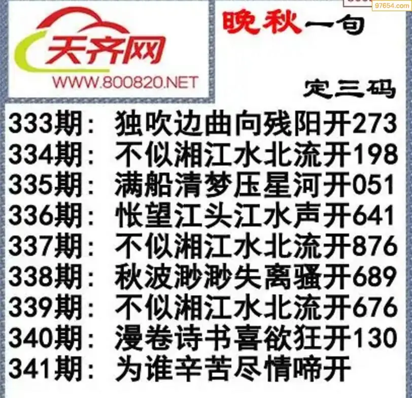 341期3D晚秋(乙种和值)谜:一样不差 D:妻和胆量