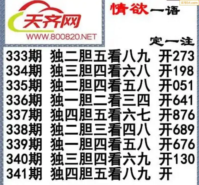 341期3D晚秋(乙种和值)谜:一样不差 D:妻和胆量