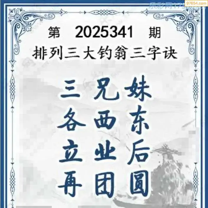 25年体彩p3第341期大钓翁三字诀
