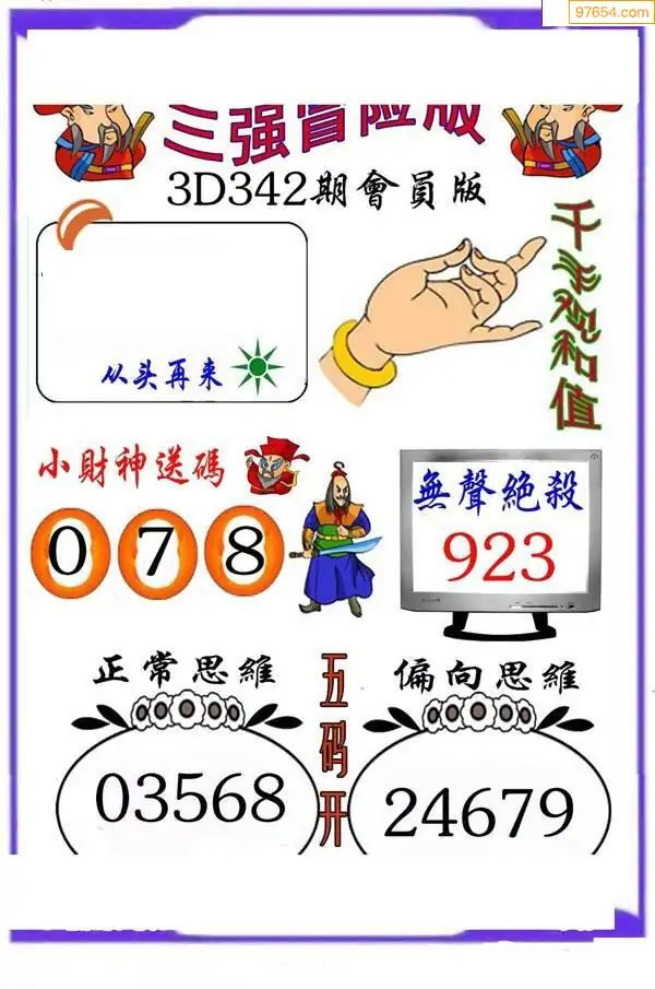 25年342期财神说彩3D综合图(原创)_3d财神到财神送胆