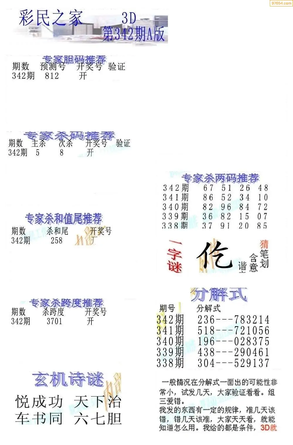 25342期3D彩民各类资料A版