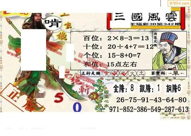25年342期财神说彩3D综合图(原创)_3d财神到财神送胆