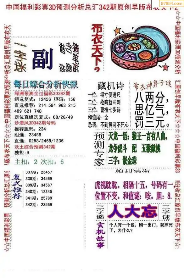 福彩342期3d真精华布衣+布衣早报(转载)