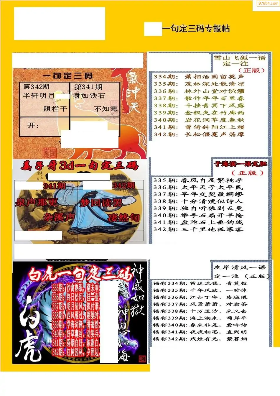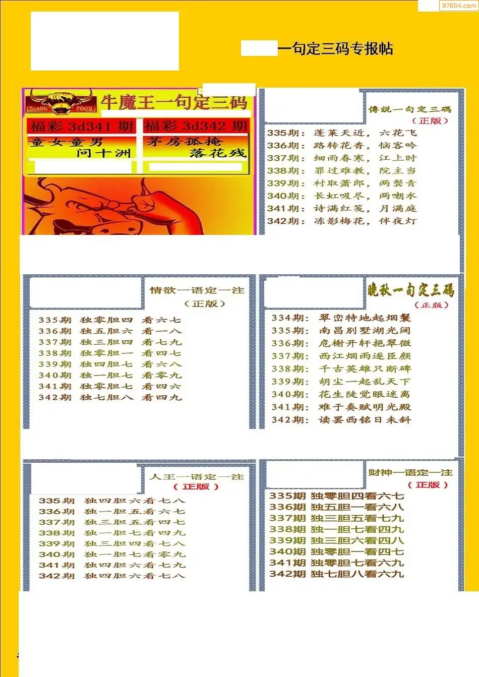 福彩3D342期天牛彩吧套图整合总汇