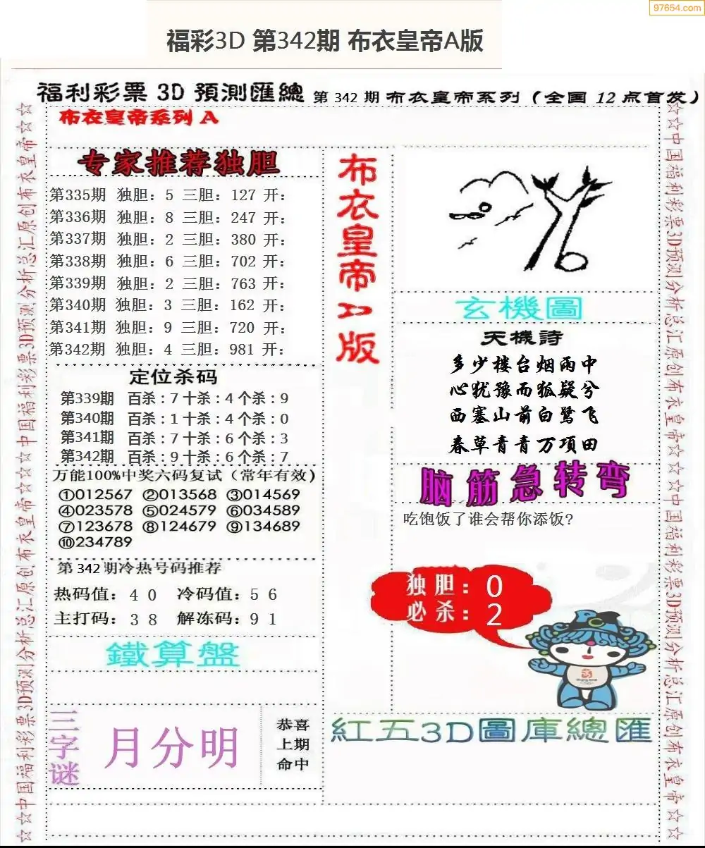 福彩342期3d真精华布衣+布衣早报(转载)