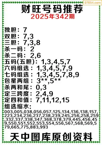 342期97654本站收集胆码出号预测