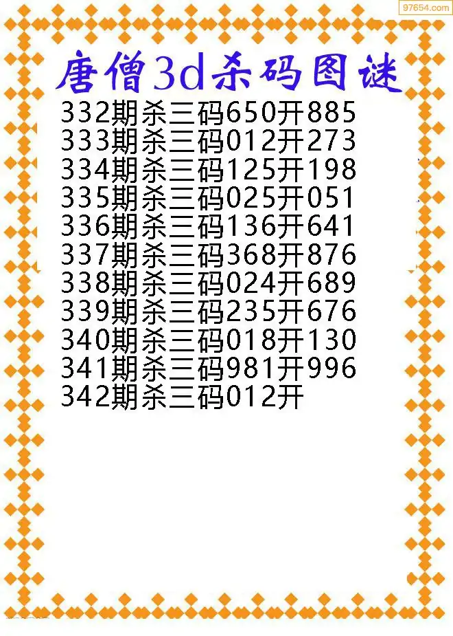 (3)2025342期3D预测总汇全图_福彩3d图谜字谜总汇