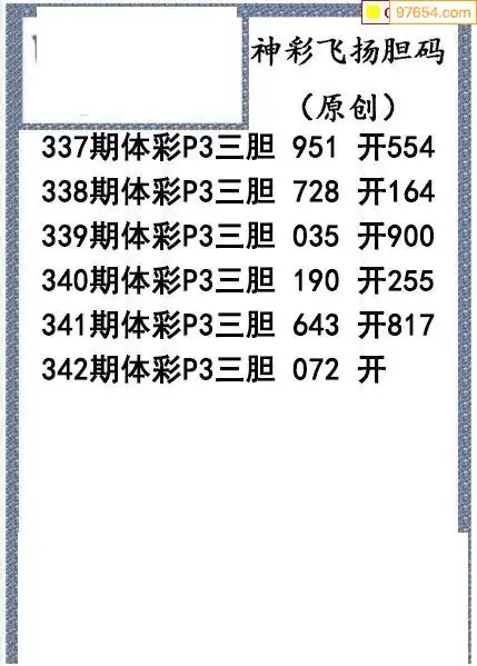 25342期神彩飞扬体彩P3三胆图谜