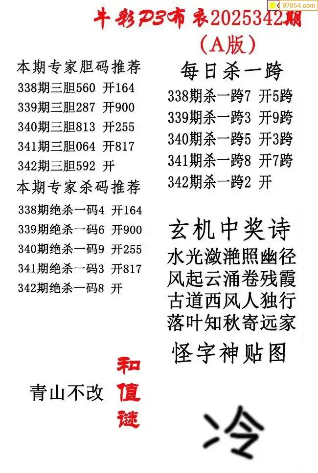 牛彩布衣342期精华版图谜
