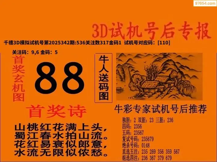 3D343期陈哲友福彩试机号后一语定胆(原创)