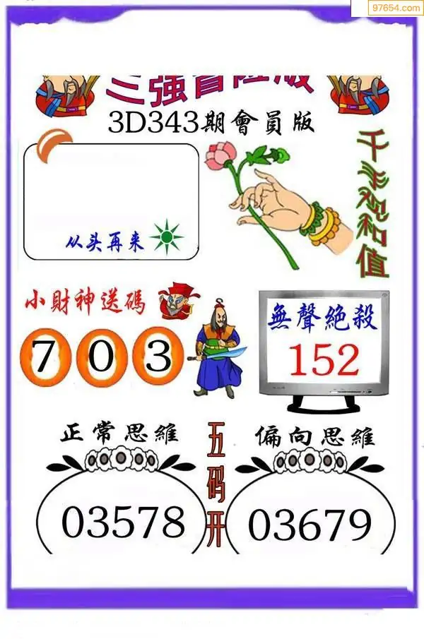 25年343期财神说彩3D综合图(原创)_3d财神到财神送胆