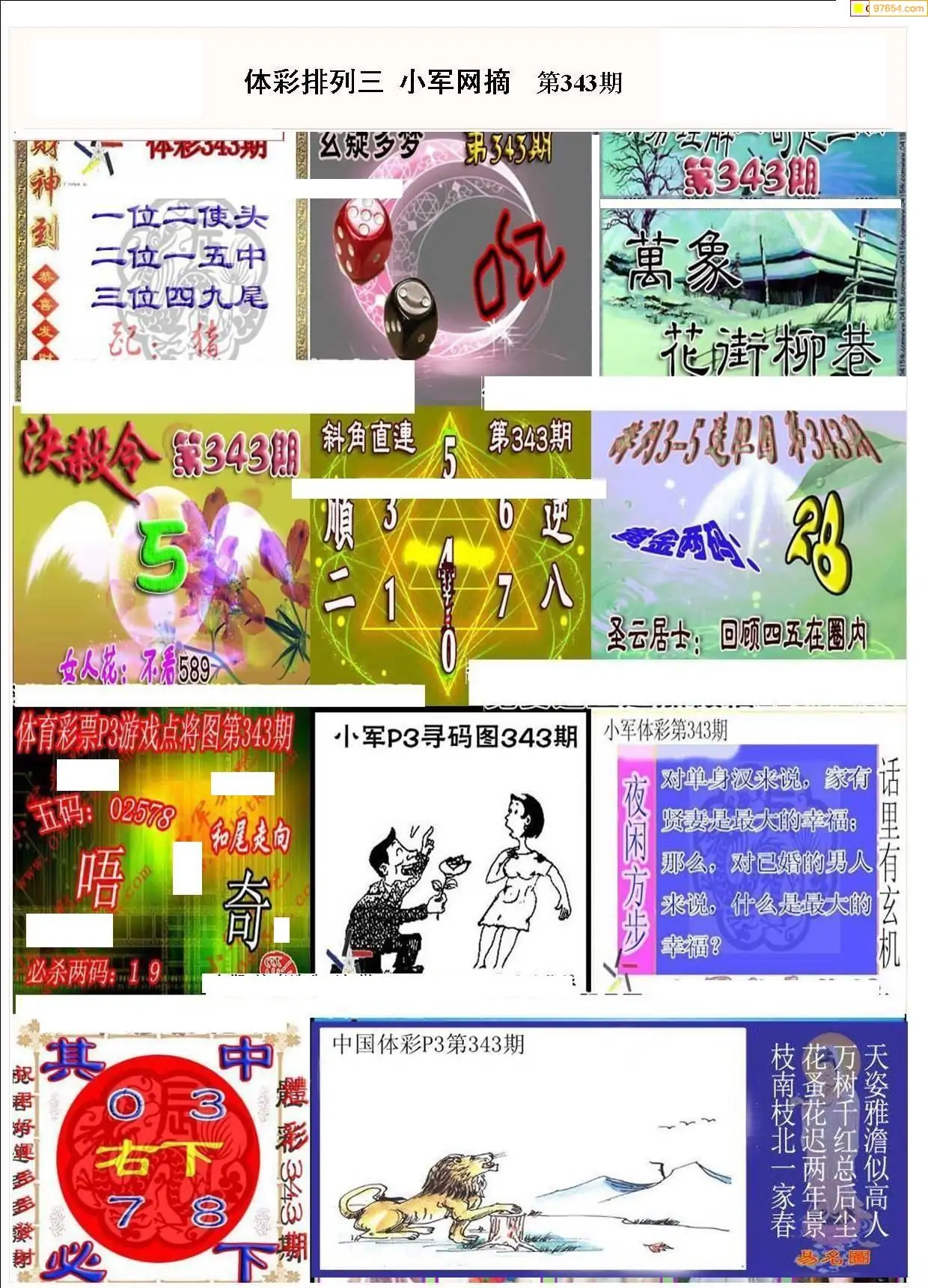2025343期彩友图迷汇总_排列三今天图谜总汇全图