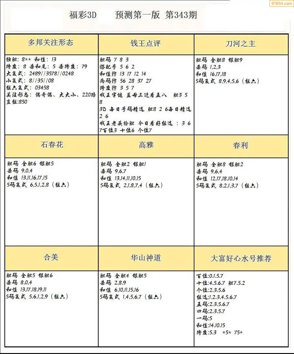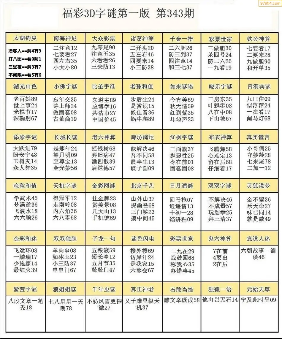343期3D牛彩预测报+彩吧字谜报